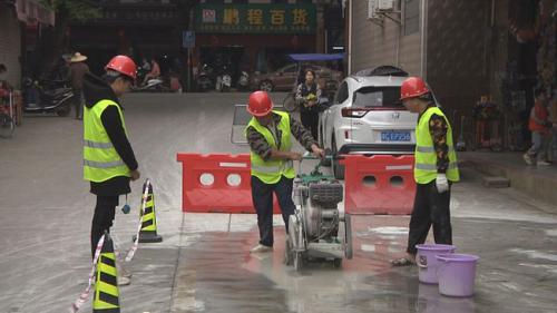 12月4日上午,記者在施工現場看到,施工人員正在使用爆破機、切割機等施工器械,推進項目管道鋪設部分的路面切割和路面破除施工任務。