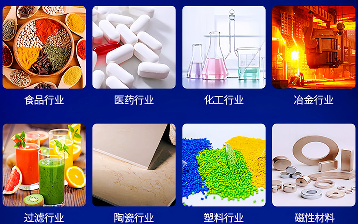 應用范圍:食品類,化工類,冶金制藥類,礦石耐火材料類等